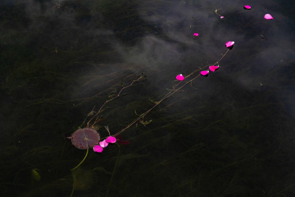 This series of twelve photographs was created along a walking path near my home in Locust Hills—a place where light, shadow, and color shaped quiet moments of discovery. From a cobweb glistening in the sun to mayflies caught in backlight, from lily pads scattered with rose petals to the shifting greens and yellows of the landscape, the images trace the delicate balance of presence and pause.